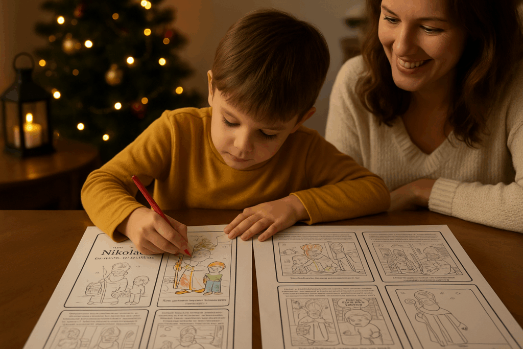 🎅 Nikolausgeschichte für Kinder zum Selbst-Ausmalen – mit Herz & Mitgefühl